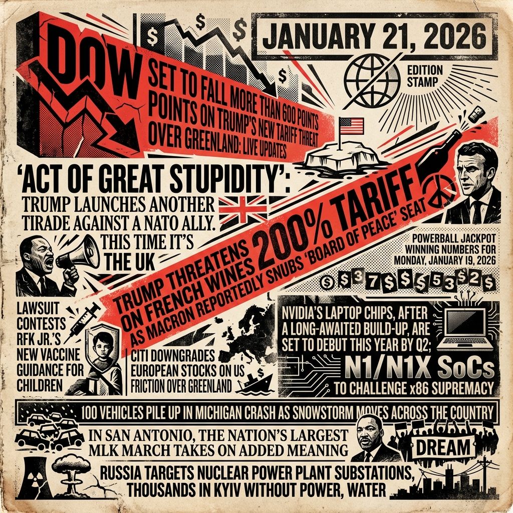 Dow set to fall more than 600 points on Trump’s new tariff threat over Greenland: Live updates